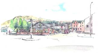 The site had a small Tourist Information Centre and public toilets which formed part of the brief. There is a considerable change of level over the site, which floods periodically. Over time the focus in the village had changed from the main street to the car park. This building tries to readdress this by linking the two and forming an area for events to the south of the building. Here, rowan trees have been planted, a species which evokes the story of Rev. Kirk and the tree’s role in keeping away "evil spirits". The timber boarding reflects the cladding which has been over-painted on many of the existing buildings in the main street - a common image on old postcards.